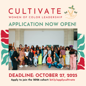 Application for the Cultivate Leadership Program 2025 – 2026 cohort is now open. If you are a woman or nonbinary leader of color working in the social, economic, and/or racial justice movements and are interested in leadership development and receiving Executive Coaching, please consider applying!